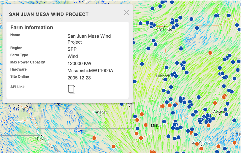 Our new energy/farm endpoint provides energy output data for wind and solar energy-producing sites across the US and Canada. The endpoint delivers estimated observations and forecasted energy output, providing crucial insights for various applications within the renewable energy industry.