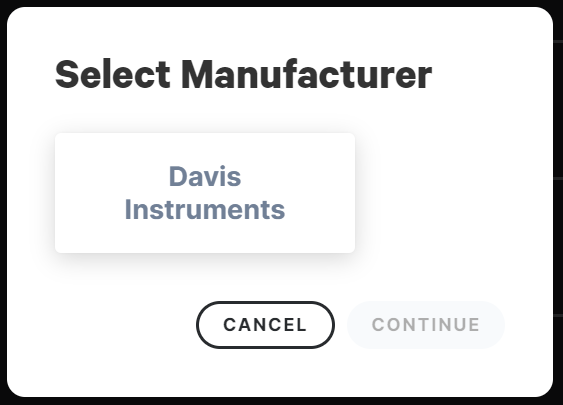 Next, select your station’s manufacturer. The only manufacturer available as of this post's publishing is Davis - but don’t worry, more manufacturers will be supported soon!