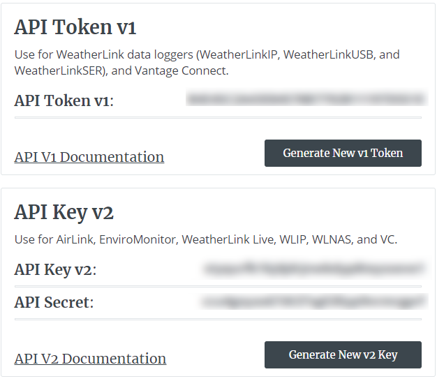 And now, input your public and private Davis Instruments API V2 keys. Retrieve these from the Account Information section in Davis Weatherlink (see below for visual).