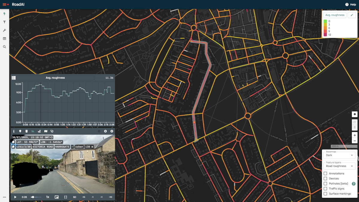 It's a powerful combination. Use roughness data to identify problem areas, then use the RoadAI smartphone app to capture the complete picture with detailed defect data, condition assessment, and a high-definition video record for planning and budgeting.