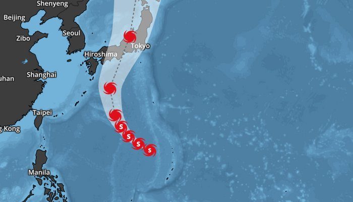 The following request will display a tropical map that includes both the history and forecast tracks for Super Typhoon Jebi in the West Pacific: