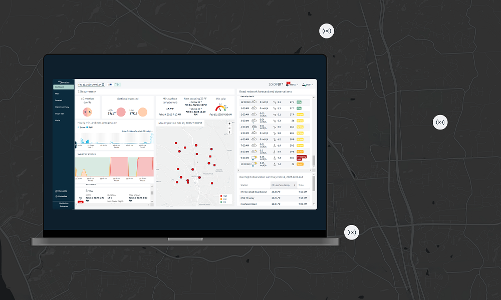 Xweather Horizon is a road weather subscription service for winter maintenance professionals. It uses in-pavement sensors to generate enhanced road weather forecasts. Xweather Horizon was an attractive alternative since it provides additional data using in-ground pavement sensors. This data, which includes temperatures at various levels, the state of the road – dry or wet, and the amount of salt on the road, can be used to enhance forecasts on the local roads.